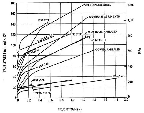 圖6 多種真實金屬材料的真應力真應變曲線