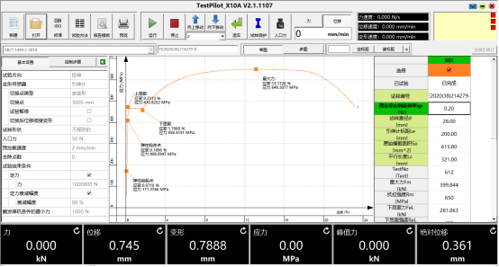 以金屬材料拉伸試驗為例,使用濟南眾標測試解決方案進行試驗時,可以發現系統配備的TestPilot軟件界面顯示的沿軸向方向進行拉伸時的應力一應變試驗曲線走勢圖和國家標準GB/T228.1《金屬材料拉伸試驗第一部分 室溫試驗方法》中的圖1非常相似,該曲線橫坐標為應變,縱坐標為應力,根據金屬材料的性能特征,我們可以對曲線的特征點做出如下解讀: